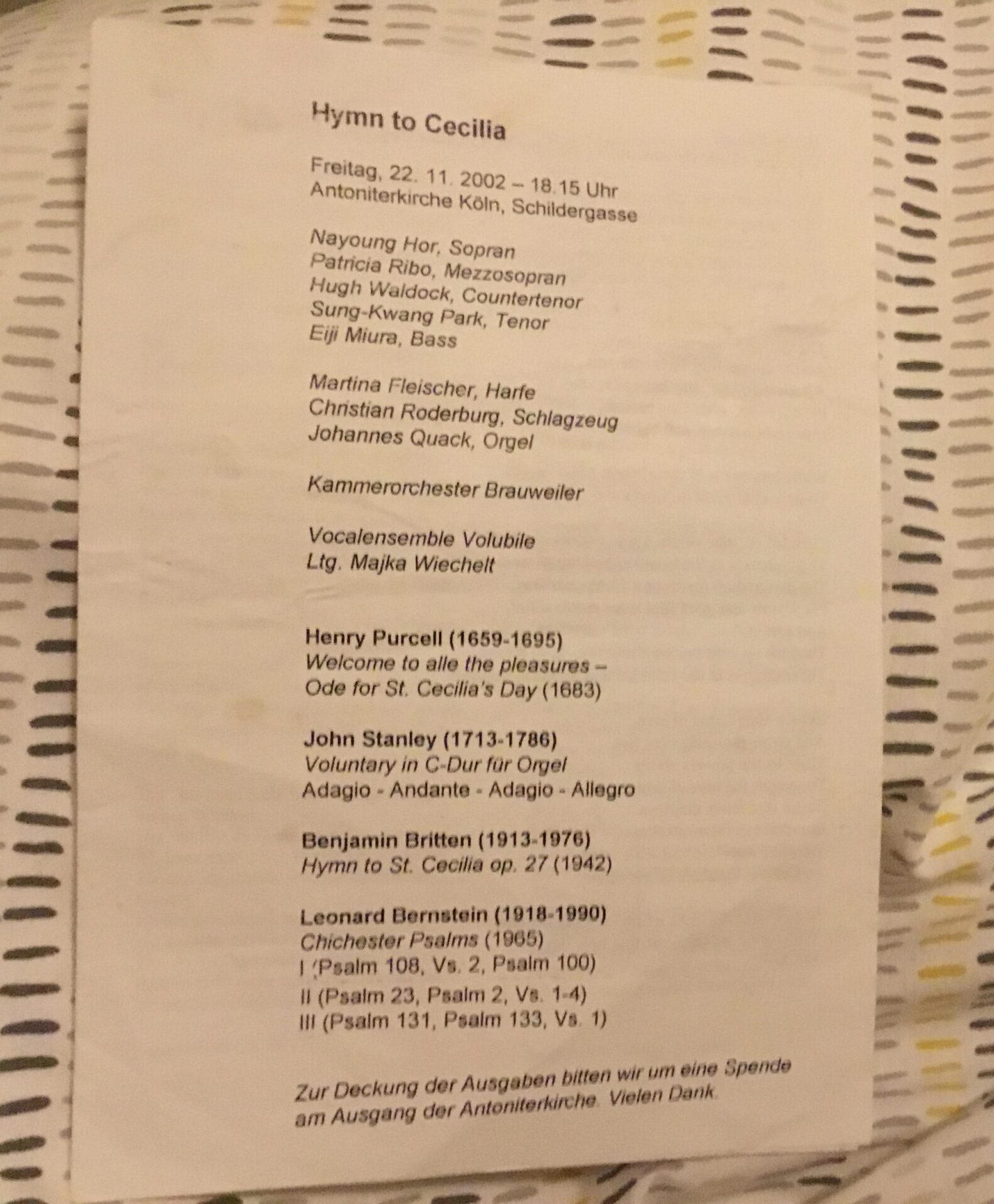 Career Highlight : Professional Concerts in Cologne for St Cecilias Day 2002